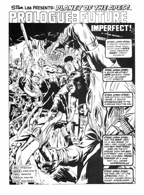 In a truly bizarre turn of events, in order to fill in the gaps while waiting for new American material, the fledgling UK arm of Marvel comics literally decided to turn Killraven into Apeslayer. To re-purpose existing Killraven material as new stories to use as part of their Planet of the Apes series.